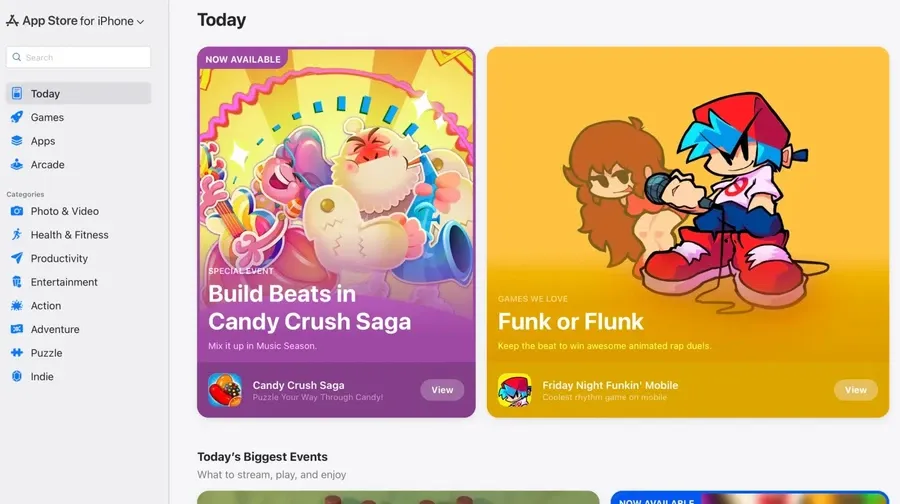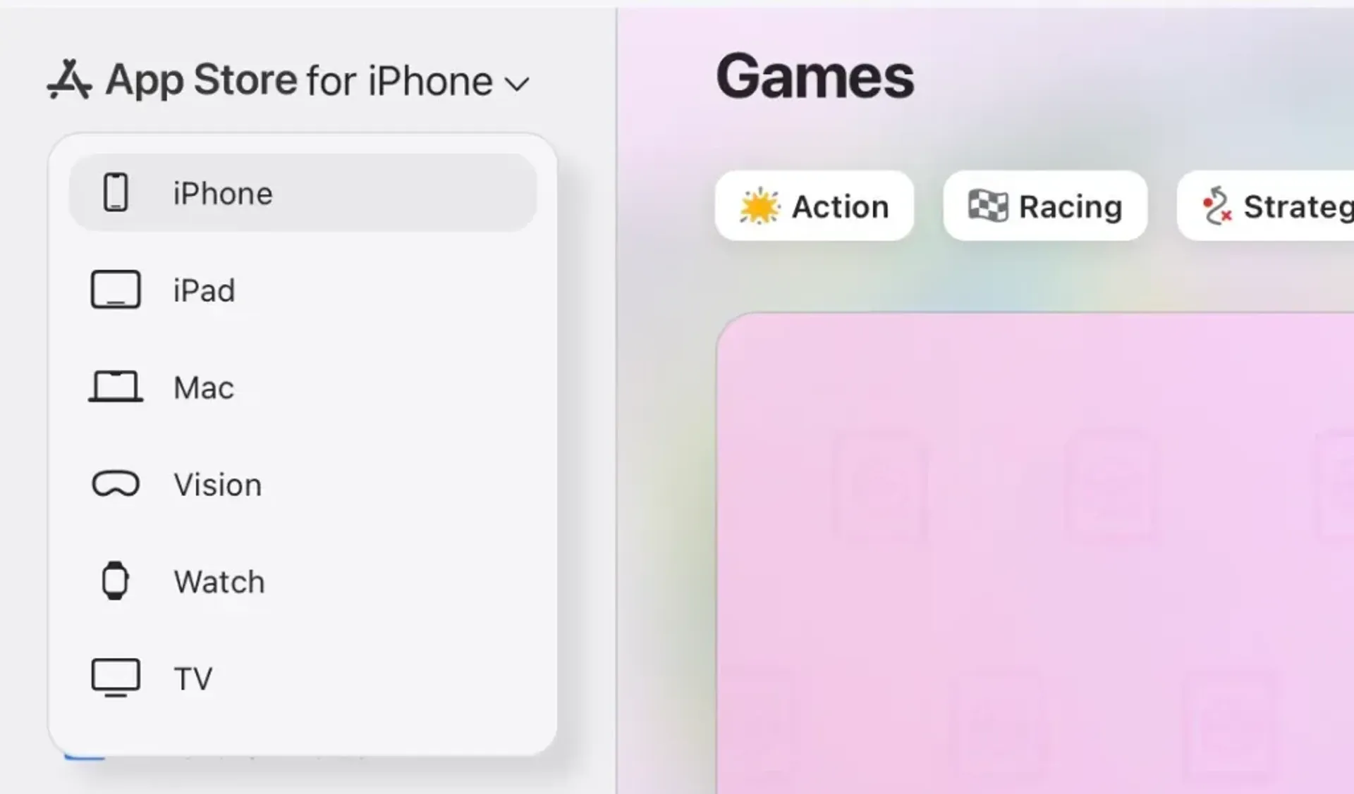 Пользователи могут переключаться между разделами для iPhone, iPad, Mac, Apple Watch, Apple TV и Vision Pro, изучать подборки во вкладке «Сегодня» или сортировать приложения по категориям — от «продуктивности» до «развлечений» и «приключений».